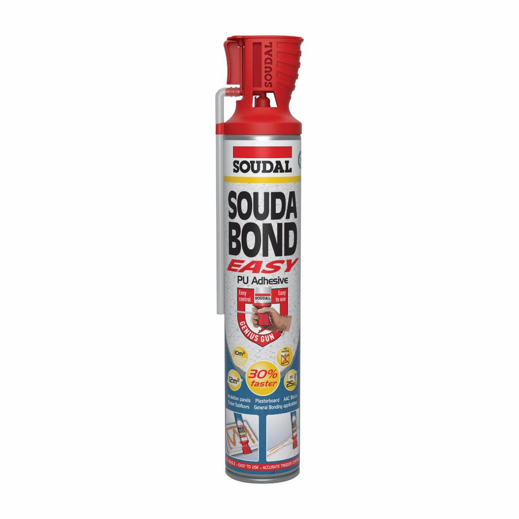 ADHESIVE POLYURETHANE FAST CURE 750ML CARTRIDGE SOUDABOND EASY GENIUS GUN Ready to use single component polyurethane foam adhesive for bonding insulation panels and plasterboard with accurate trigger control.Key features