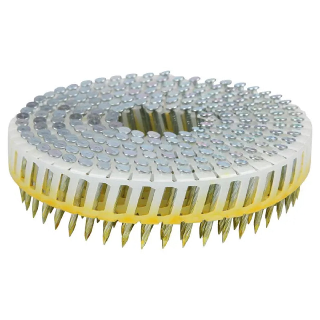 COIL NAIL SCREW SHANK PLASTIC COLLATED 15 DEG HARDENED | FINISH: ELECTROGAL | SIZE: 32MM X 2.90MM | QTY: BOX OF 6,000 15 degree plastic or wire collated coil nails in hardened steel for construction fastening.