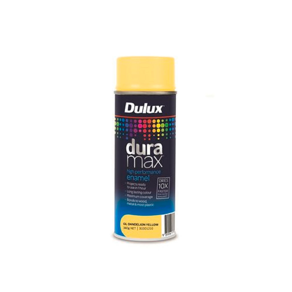 DULUX DURAMAX GLOSS ENAMEL SPRAY PAINT 340G COLOUR: WHITE. Finish: White High performance enamel spray with Duramax technology for fast drying and durable finish.Key features