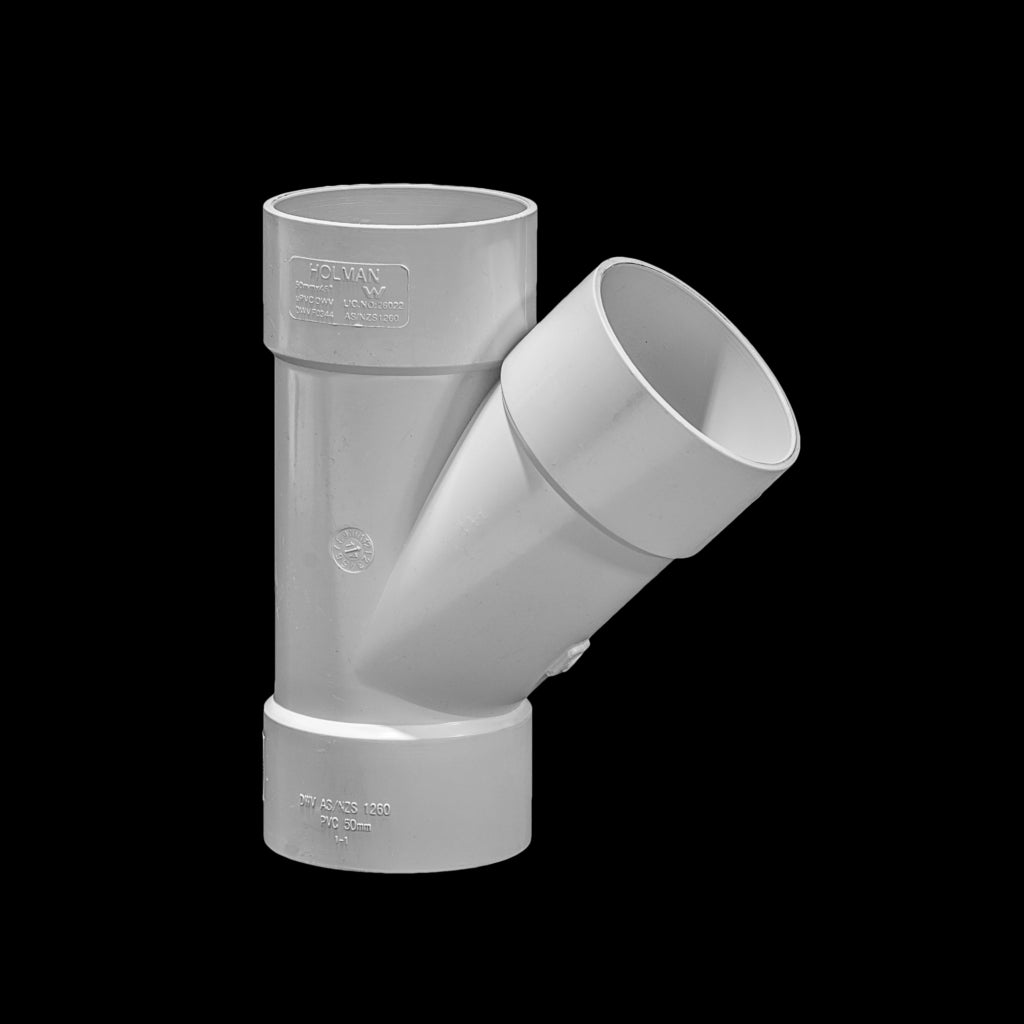 DWV JUNCTION FF PLAIN 45DEG. PVC fitting for drain, waste and vent applications. Connects with solvent cement. Complies with AS/NZS 1260.Key features