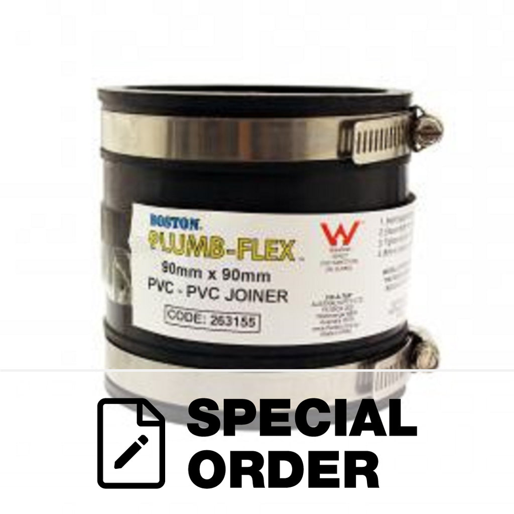 CONNECTOR FLEXIBLE 90MM PVC TO PVC PLUMBFLEX boston plumb flex storm water pvc pipe joiner 90mm