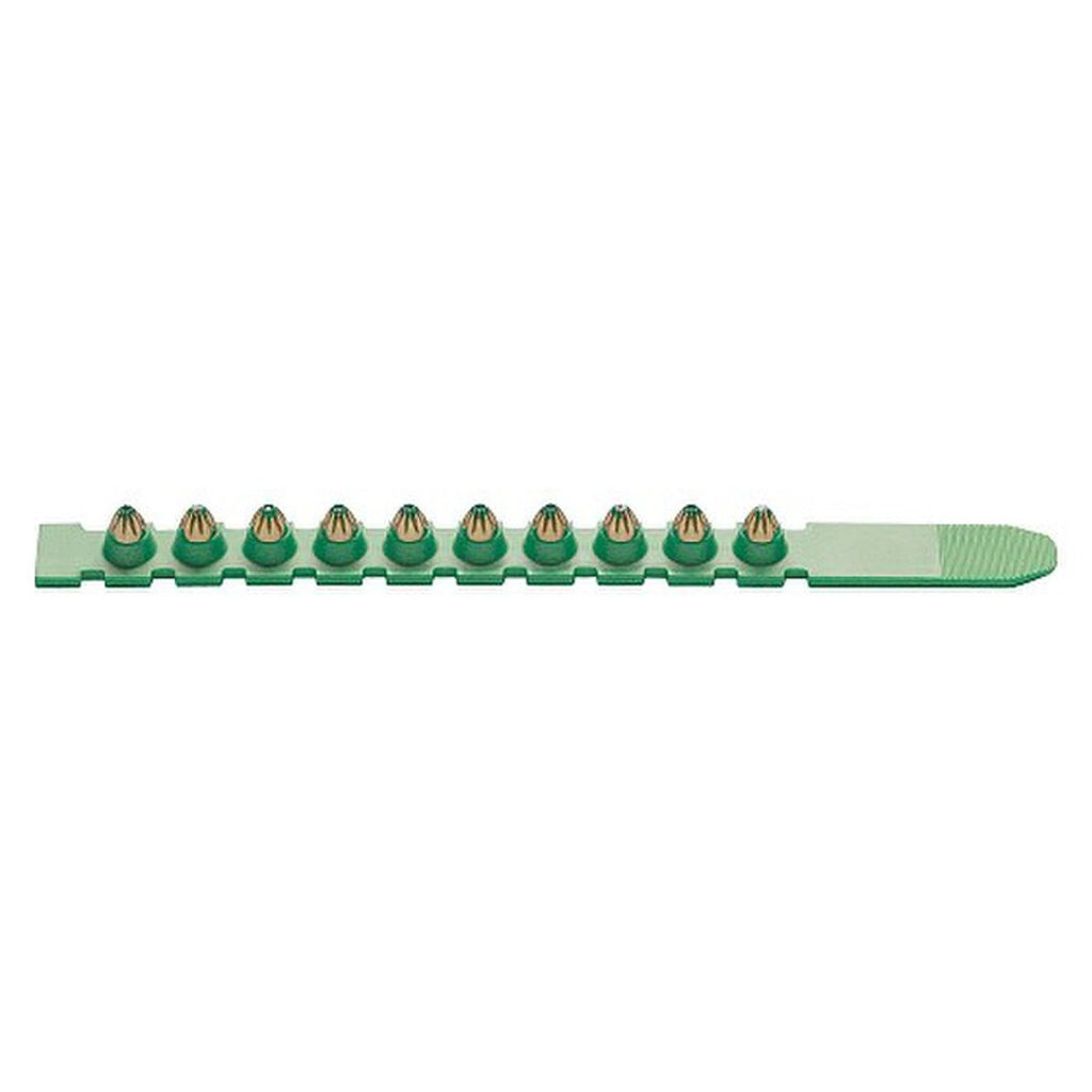 Standard .27 cal safety strip charge in green used for power actuated fastening providing controlled energy output for driving fasteners into concrete or steelKey features