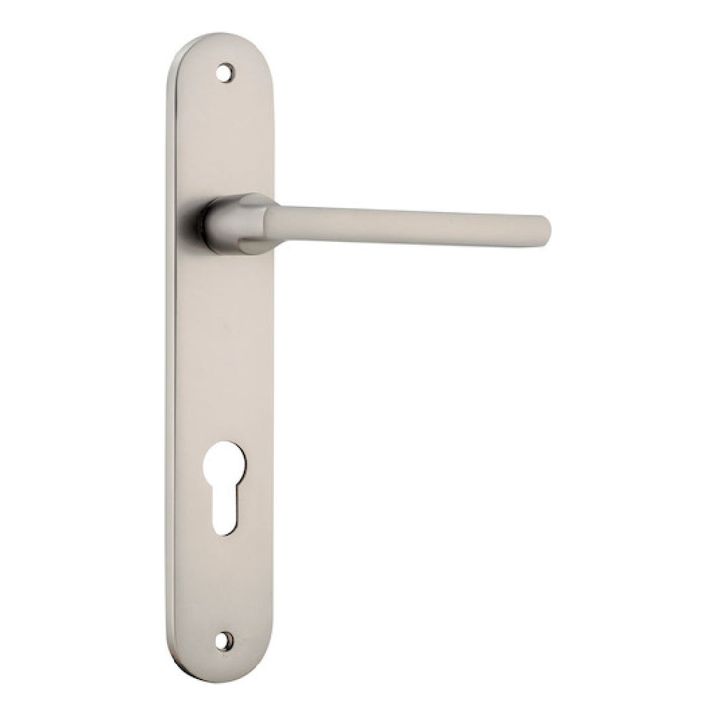 IVER BALTIMORE ENTRANCE LEVER SET OVAL BACKPLATE 230 X 40 X 55MM | FINISH: SATIN NICKEL. Finish: SATIN NICKEL. Versatile, slimline lever that integrates with a wide range of interiors.