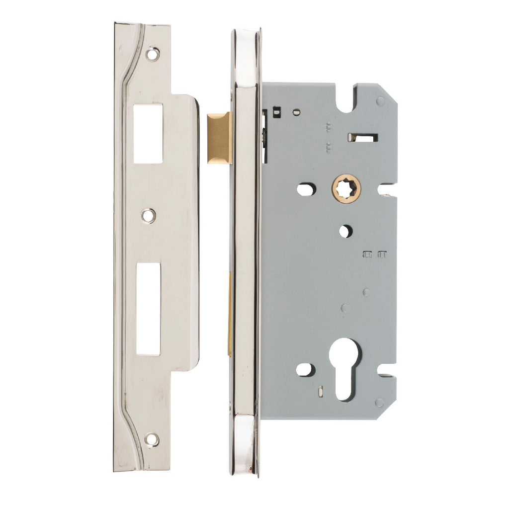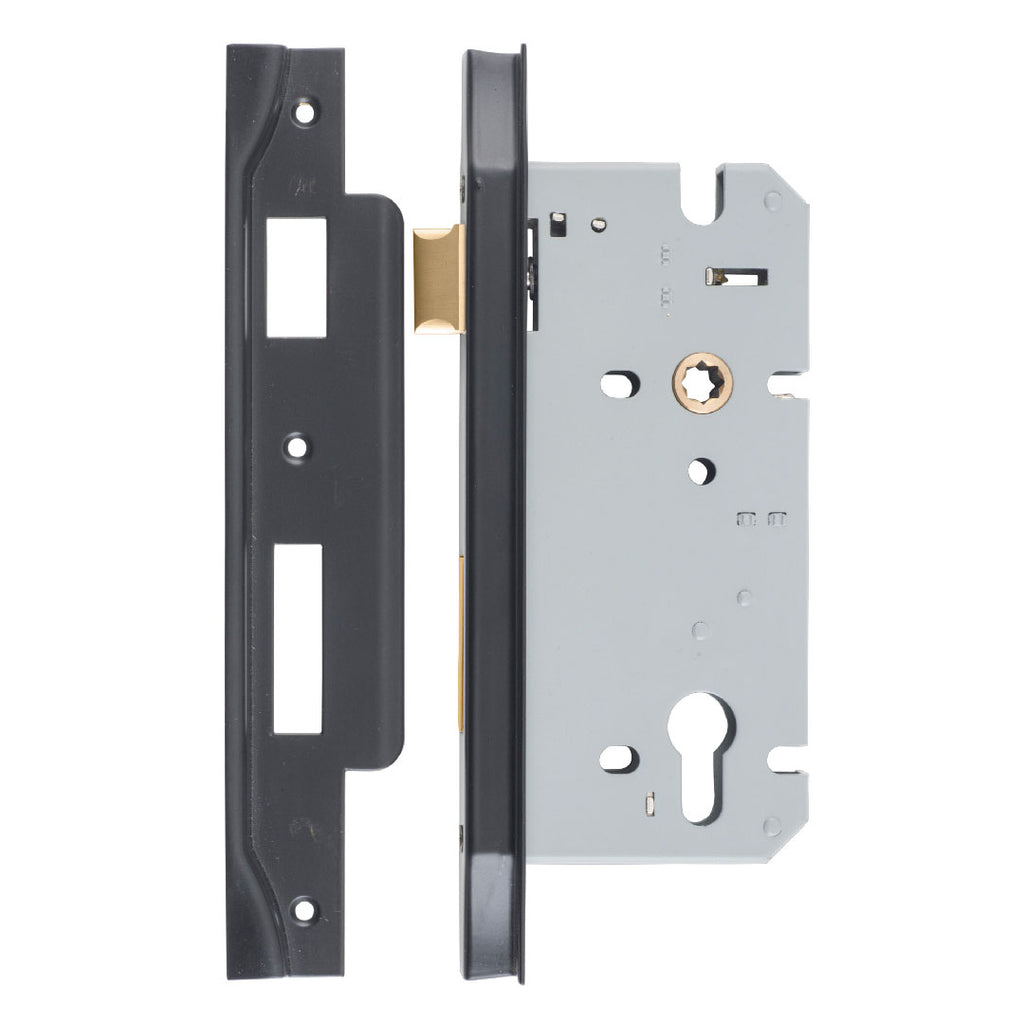 EURO MORTICE LOCK REBATED 60MM BACKSET. Finish: Brushed Chrome. High security design with 85mm centre to centre, available in 45mm and 60mm backsets.