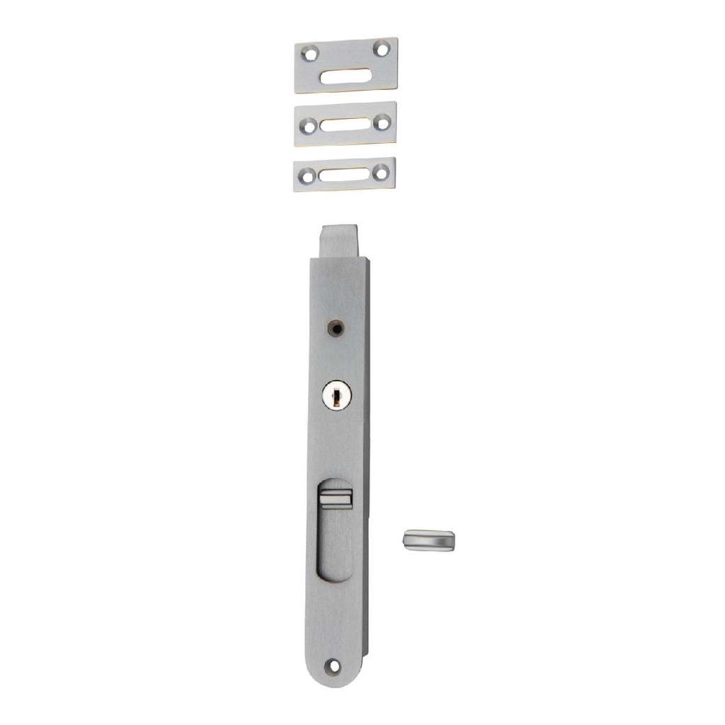 IVER FLUSH BOLT LOCKING 200 X 29MM | FINISH: SATIN NICKEL. Finish: SATIN NICKEL. Key-operated solid brass locking flush bolt that sits flush within the door.