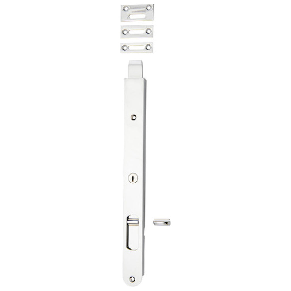 IVER FLUSH BOLT LOCKING 300 X 29MM | FINISH: MATT BLACK. Finish: MATT BLACK. Key-operated solid brass locking flush bolt that sits flush within the door.