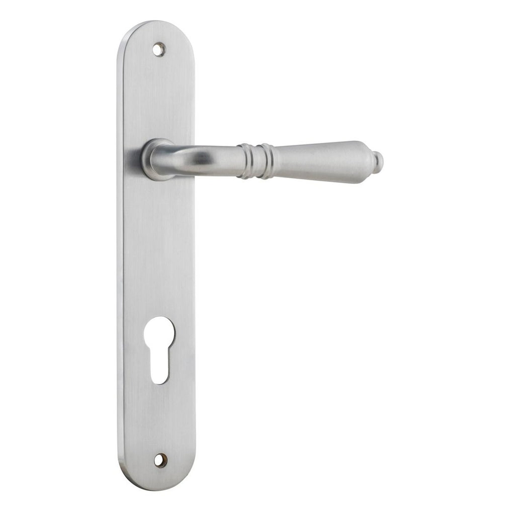 SARLAT ENTRANCE LEVER SET OVAL BACKPLATE 230 X 40 X 53MM The Sarlat lever has a classic fluted shape with ornamental ring detail and a decorative tip on an oval backplate.
