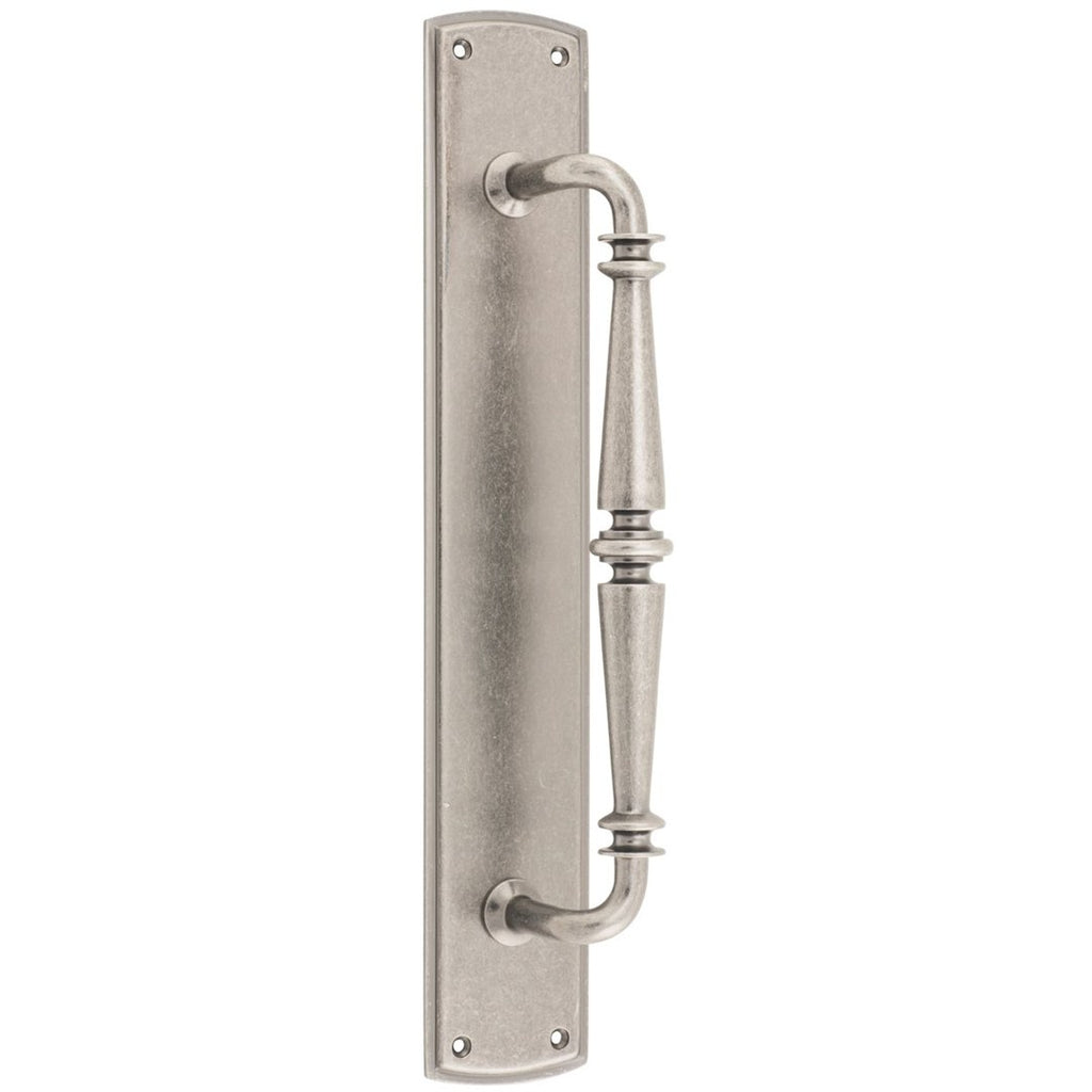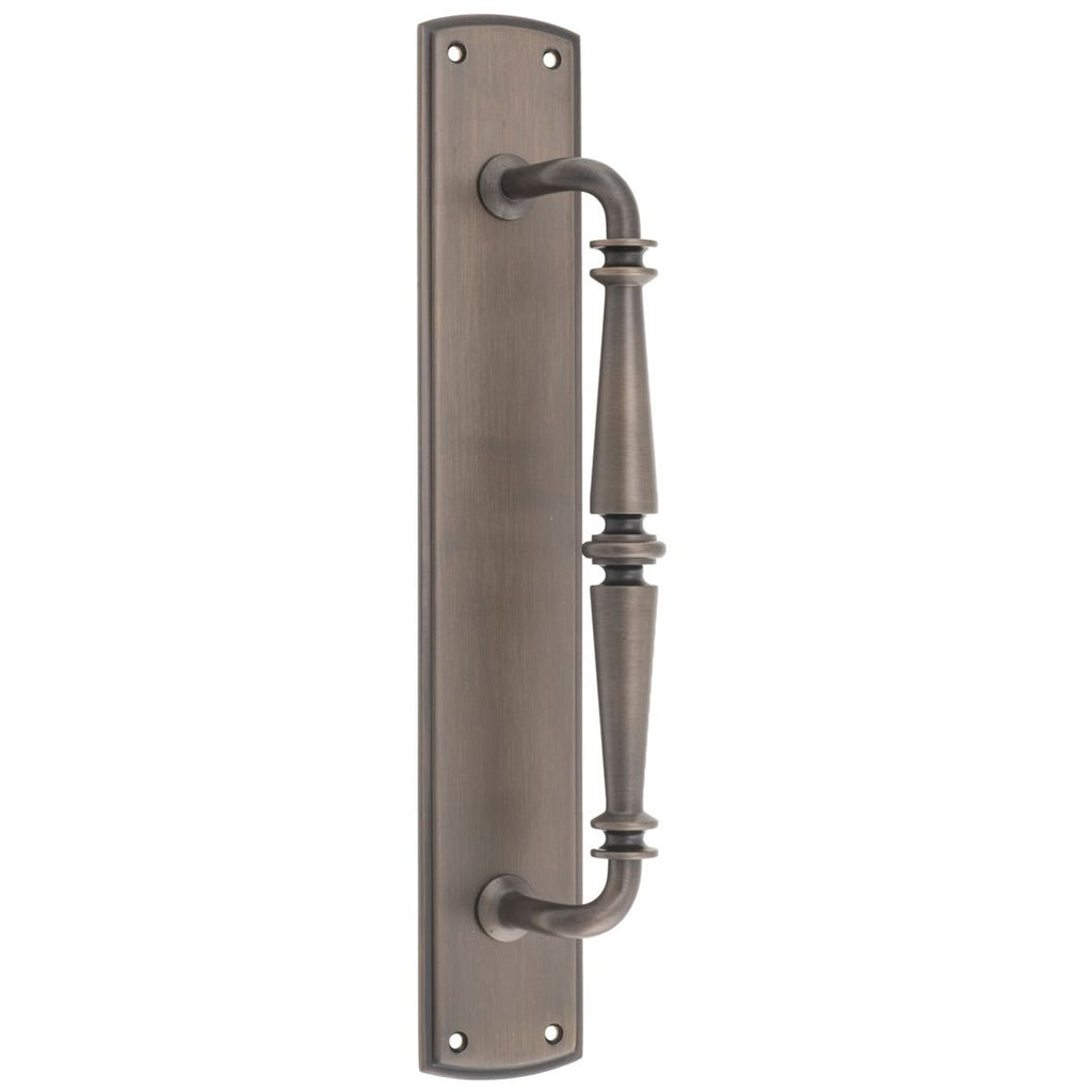 SARLAT PULL HANDLE ON BACKPLATE 380 X 65 X 72MM. Finish: Signature Brass. Traditional Sarlat profile with fluted contours and ornamental detail; 450mm and 600mm pulls can be purchased as entrance kits.