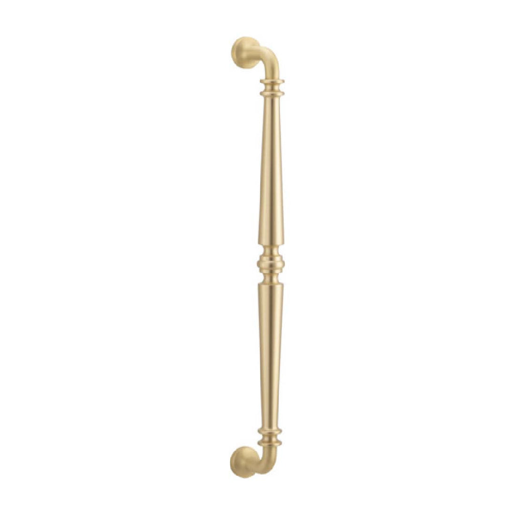 SARLAT PULL HANDLE ON BACKPLATE 487 X 35 X 72MM. Finish: Polished Brass. Traditional Sarlat profile with fluted contours and ornamental detail; 450mm and 600mm pulls can be purchased as entrance kits.