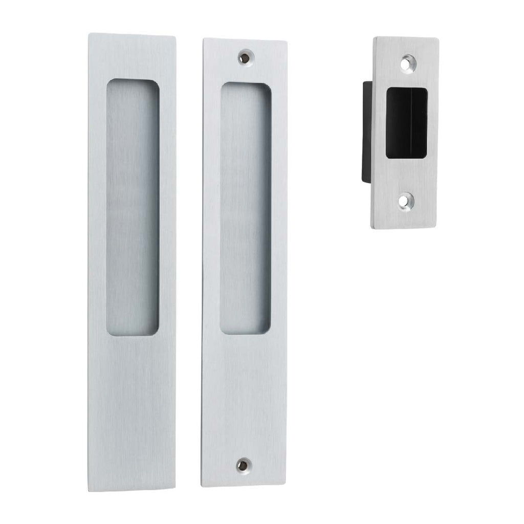 IVER SLIDING DOOR FLUSH PULL RECT PRIVACY SET 225 X 45MM | FINISH: SIGNATURE BRASS. Finish: SIGNATURE BRASS. Low-profile rectangular sliding door pull set sold with a matching privacy tube latch.