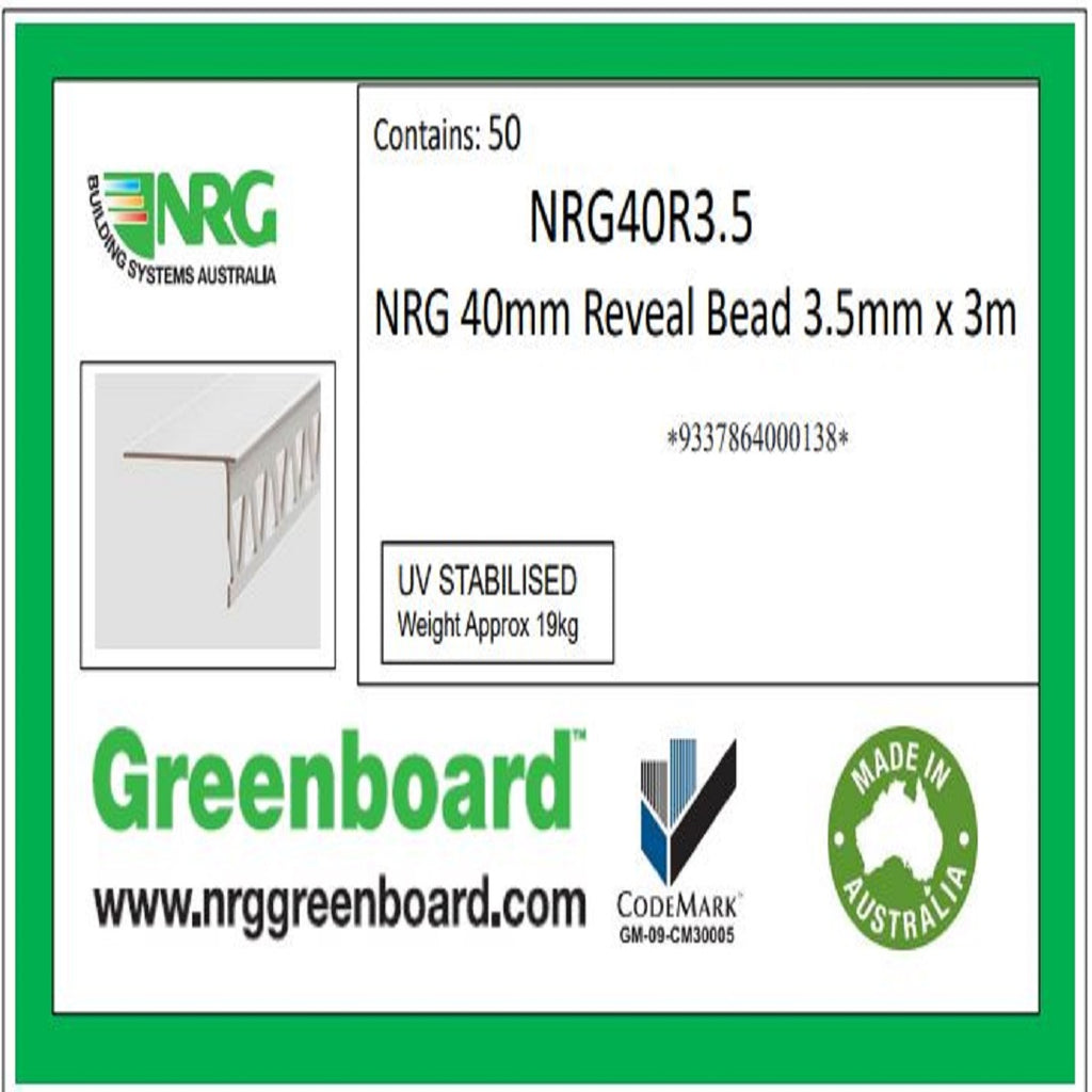 Reveal Bead 75mm width 3.5mm build 3.0m length profile to finish window and door reveals