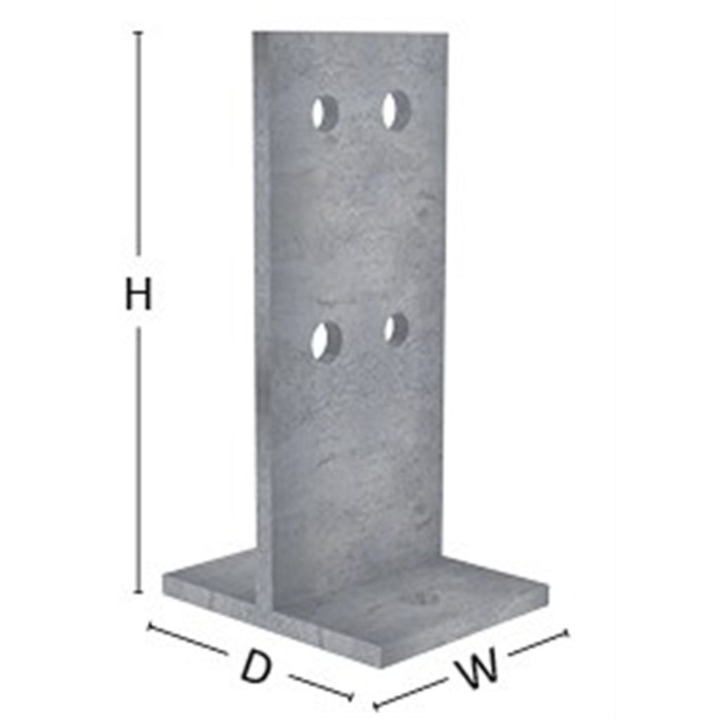 Post Anchor T Blade Bolt On Type T M16 Bolt Holes 240x85x8mm To Baseplate 85x140mm Hot Dipped Galvanised Heavy Duty
