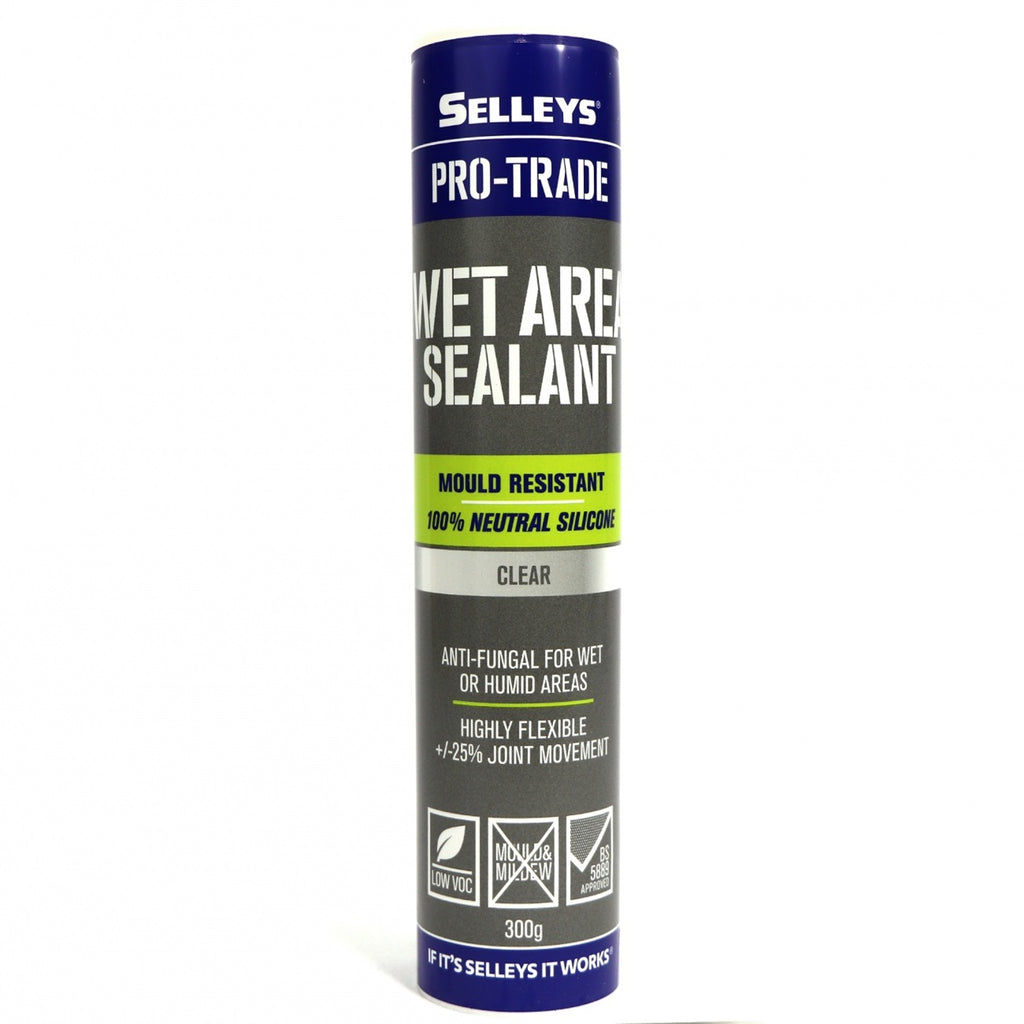 SELLEYS PRO TRADE WET AREA SILICONE 300G CLEAR white flexible interior gap filler that enables painting in about 10 minutes