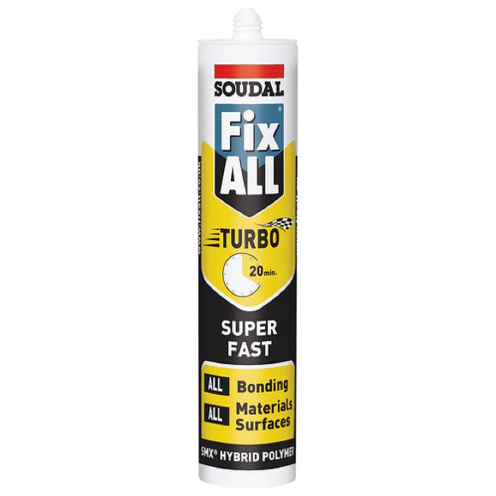 SOUDAL ADHESIVE SEALANT SUPER FAST FIXALL TURBO 290ML High initial tack SMX polymer sealant adhesive for sealing and bonding.Key features