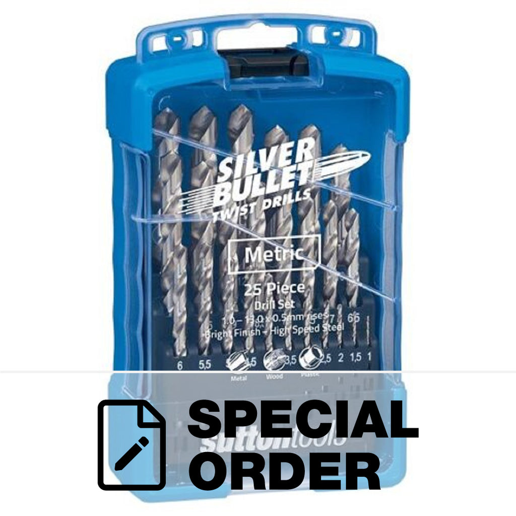 SILVER BULLET JOBBER DRILL BIT SET 25 PCE 1 - 13MM IN 0.5MM INCREMENTS Bright finish General purpose HSS jobber drill for machine and hand held drilling in steel, aluminium, brass, wood and plastics.